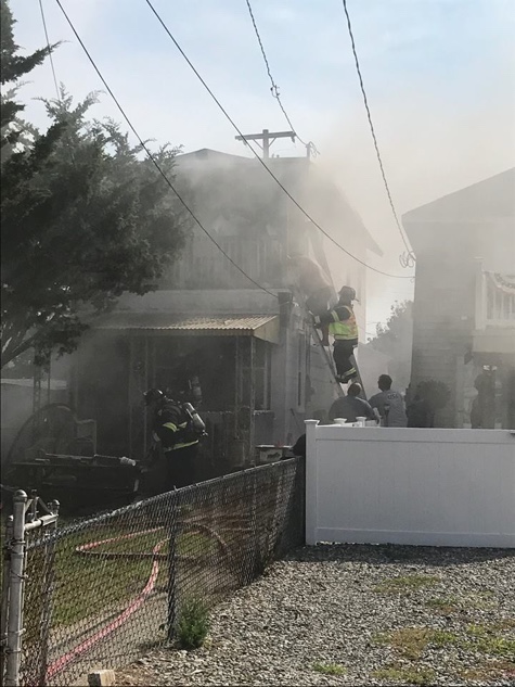 Initial reports on-scene were indicating the dwelling may be occupied. An occupant then presented himself on a second floor balcony unable to escape the home. The all-hands was struck having Rio Grande Fire respond to the scene for R.I.T. and Wildwood Crest Fire cover the city. Firefighters gained access to the victim via a ground ladder, removed the railing with a chainsaw and rescued the victim from the second floor balcony. The victim was treated by Wildwood Crest EMS on scene for smoke inhalation and refused transport to CRMC.