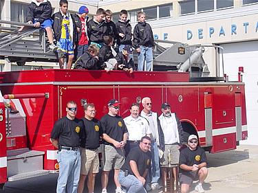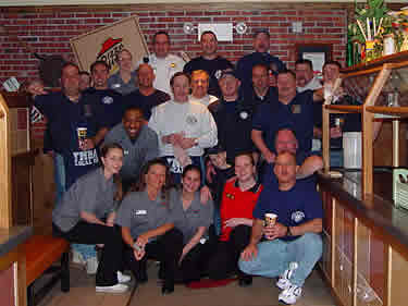 (Left to Right) Son Benny, Sam Petrosino, Bill Davenport, Stanley Osmunsen, Len Lauriello, sister-in-law Mrs. David Ingersoll, wife Mrs. Ben Ingersoll, brother Dave Ingersoll, Bob Fehn, Larry Lillo, Mike Neill, and Ernie Troiano, Sr. |