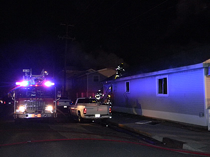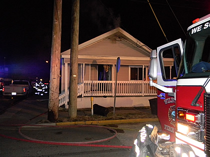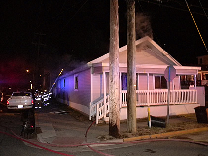 Shortly before 18:00 hours on Thursday December 6, 2012 911 calls began pouring in reporting a house fire in the area of Oak and Hudson Ave. Some of the initial calls came in to the North Wildwood Police Dept. Dispatch transmitted the Box Alarm assignment for all Wildwood companies and Engine 2 (NWFD). D and C platoons were in the middle of shift change as the box came in allowing Engine 38 to initially respond with 5 members under the command of Capt. Speigel . Upon arrival Capt. Speigel reported a 1 story wood frame private dwelling with smoke showing. Chief D'Amico (F-300) arrived and assumed command of the incident. A water supply was established as an 1-3/4" line was stretched to the front door of the dwelling. Heavy fire was venting from the C side of the dwelling at this time. Engine 38's crew stretched in and found heavy fire in the utility room of the house with extension into the attic space and adjoining rooms. Engine 38 put a knock on the fire. Primary and secondary searches were negative. Engine 2's crew was assigned to the roof for vertical ventilation. Additional arriving box alarm companies were assigned to various fireground duties including utility control and overhaul. The cause of the fire is under investigation by the Cape May County Fire Marshal's Office. Companies operated on the scene for about 2 hours before taking up. |