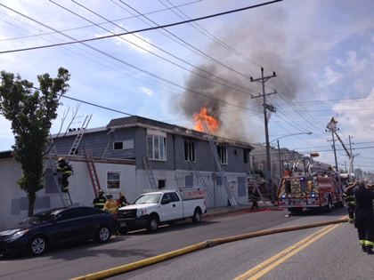 Deputy Chief Daniel Speigel requested dispatch to strike the “All-Hands” (calling Rio Grande FD to the scene and to cover the city). Initial reports were of a woman trapped in the second-floor apartment. E38 and North Wildwood Engine Company 2's crew made an aggressive interior attack while performing a primary search. A second-alarm (North Wildwood Engine & Ladder and Wildwood Crest Engine) was quickly transmitted due to deteriorating conditions. Firefighters operating on the roof were able to open up exposing the extending fire in the cock-loft area. Crews continued to aggressively attack the fire, containing the fire to the building of origin.