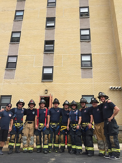 On Friday September 11, 2015 several members of the Wildwood Fire Department completed the 9/11 Memorial Stair Climb hosted by the City of Bridgeton Fire Department. Members completed the climb which consists of climbing a total of 110 stories. This climb honors and remembers the members of the FDNY who responded to the 110 story World Trade Center Twin Towers on that fateful day 14 years ago. It was an honor and privilege to climb in honor of these fallen heroes. Members completing the climb were: Captain Jim Grauel, FF Bill Cripps, FF Dan Dunn, FF Ryan Troiano, FF Adam Feltwell, FF Darrick Kobierowski, FF LJ Raniszewski, and FF Sean Stanton. Never forget!! |