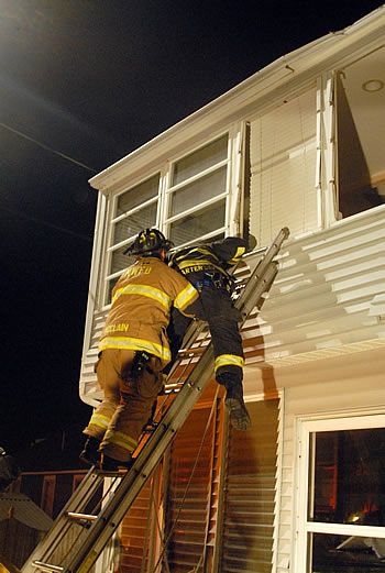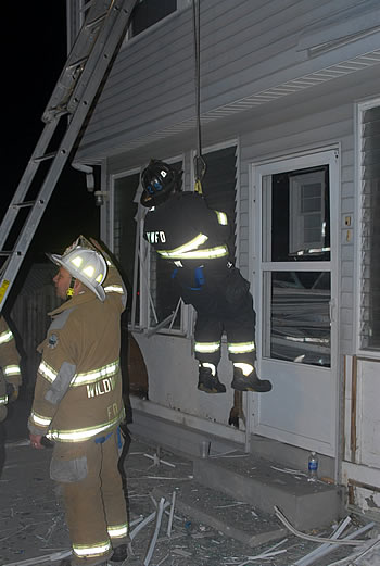 On November 1, 2010 the Wildwood City FD, along with the City of North Wildwood FD, West Wildwood FD, and Wildwood Crest FD conducted a training session at an aquired structure on Tacony Rd. in Wildwood. The structure was a 2-story duplex that was slated for demolition. The drill was divided into three stations; Primary search, Ground ladder operations, and Roof operations. All members rotated through the three stations and obtained hands-on training in a realistic environment. Training in acquired structures gives firefighters the opportunity to practice their skills as well as learn new ones in buildings that they would normally operate in. The drill was very successful. The Wildwood FD looks forward to continue training and working with our neighboring departments in the future. |