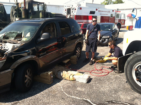 Members of the Wildwood City Fire Department are constantly training to maintain and hone are skills as well as learn new skills to provide our residents and visitors with the highest level of professional service. Even during the extremely busy summer season we continually find time for training. Some of the recent training included air rescue tool and air bag training. Platoon's utilized a donated vehicle to use during the training. D Platoon also had the opportunity to use the air tools and train on a simulated child stuck in a playground swing. The Wildwood City Fire Department is trained and equipped to handle a wide array of emergencies and continue to expand our capabilities. |